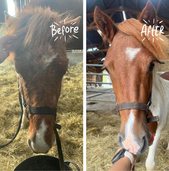 Poleciłam już ten produkt innym właścicielom koni cierpiących na świerzb słodki w naszej stajni i wszyscy zgadzają się, że wyniki uzyskane w przypadku Baileya mówią same za siebie. Dziękujemy za stworzenie tak wspaniałego produktu! Szybko stał się naszym numerem jeden.