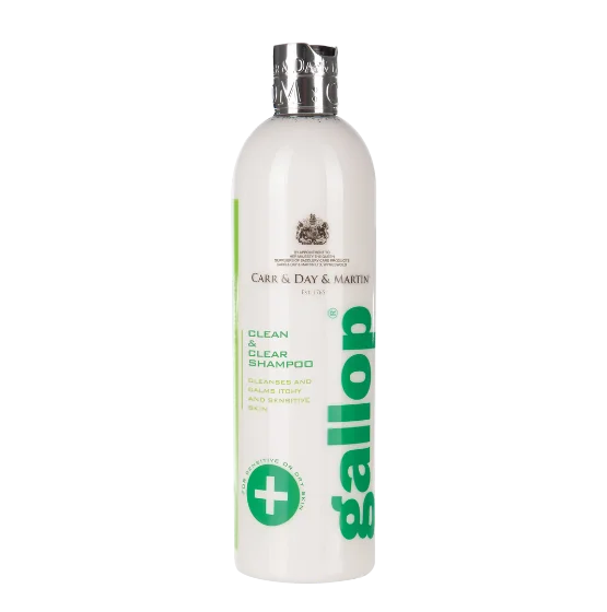 Gallop® Clean & Clear Shampoo is a high specification formula ideal for dry, flaky, itchy, scurfy and sensitive skin. Soothes and calms irritated, sore, damaged and sensitive skin. The pH neutral formula contains natural oils that helps soften and lift scabs and dandruff. Provides exceptional conditioning, noticeably softer hair and a shiny coat.